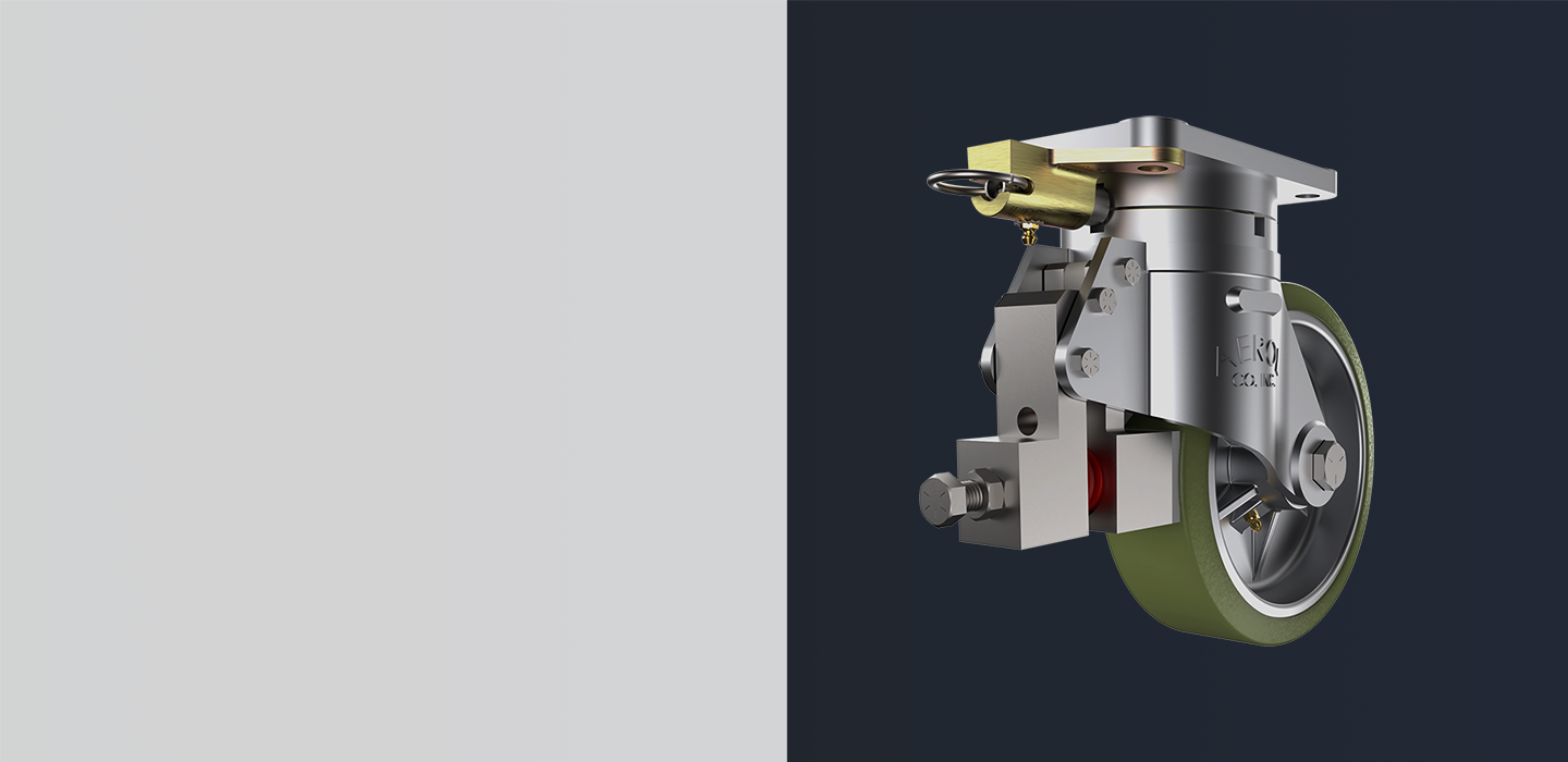 The Aerol deadman brake caster is a safety-first braking system designed to ensure complete control over heavy-duty payloads. This innovative braking mechanism automatically engages when the operator releases control, effectively stopping the caster and preventing any unintended movement. It is ideal for applications where safety and precision are critical, particularly when working with heavy loads or navigating uneven or sloped surfaces, such as a ship listing at 30 degrees off horizontal in heavy seas.